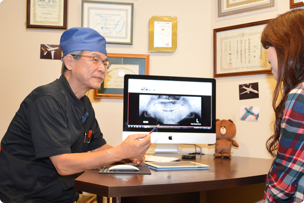 初診時には現在のお口のお悩みや不快な点、歯科治療に対しての不安などを必ずお聞きしてから治療にあたらせていただきます。